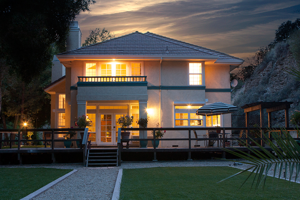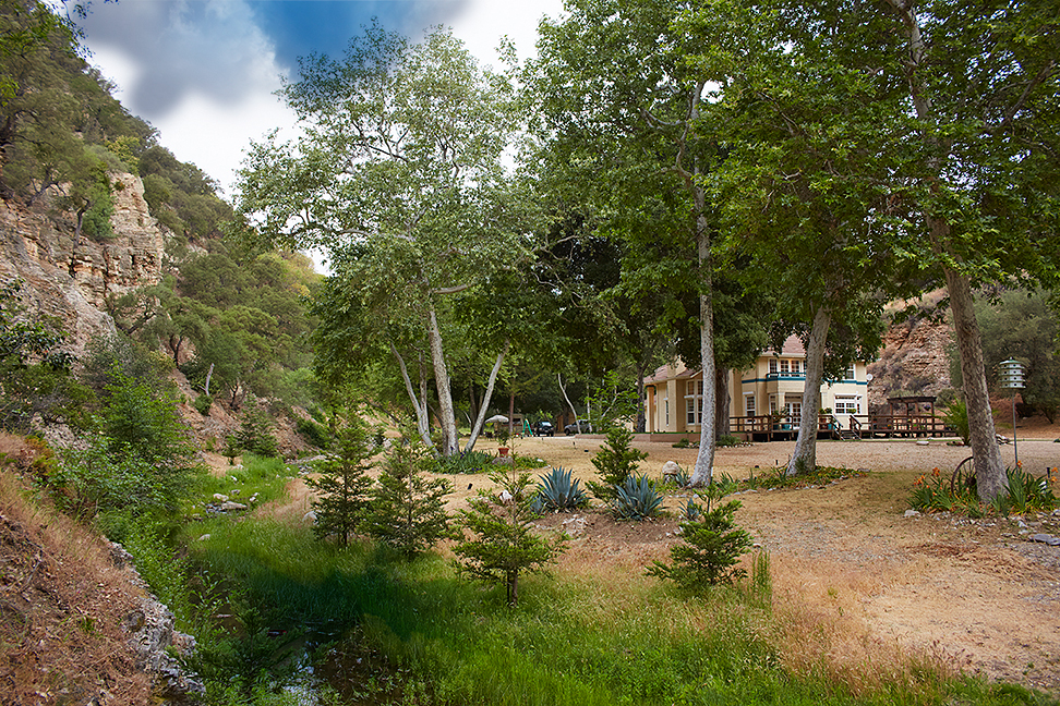 The home is surrounded by lush gardens, 3 lawns, expansive oak forest, a mountain stream and waterfall.